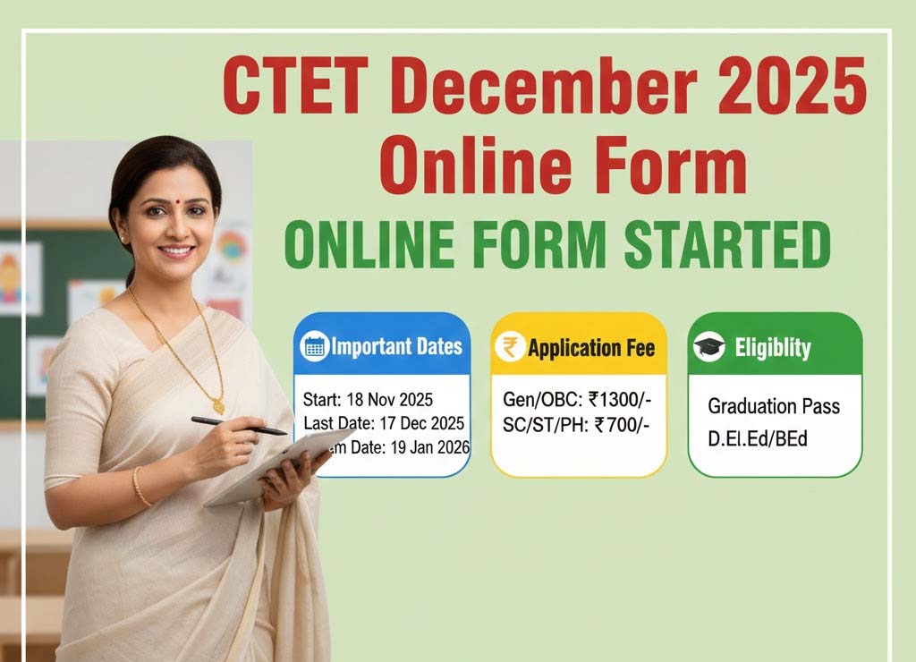 केंद्रीय शिक्षक पात्रता परीक्षा (CTET) दिसंबर 2025 के लिए आवेदन शुरू!